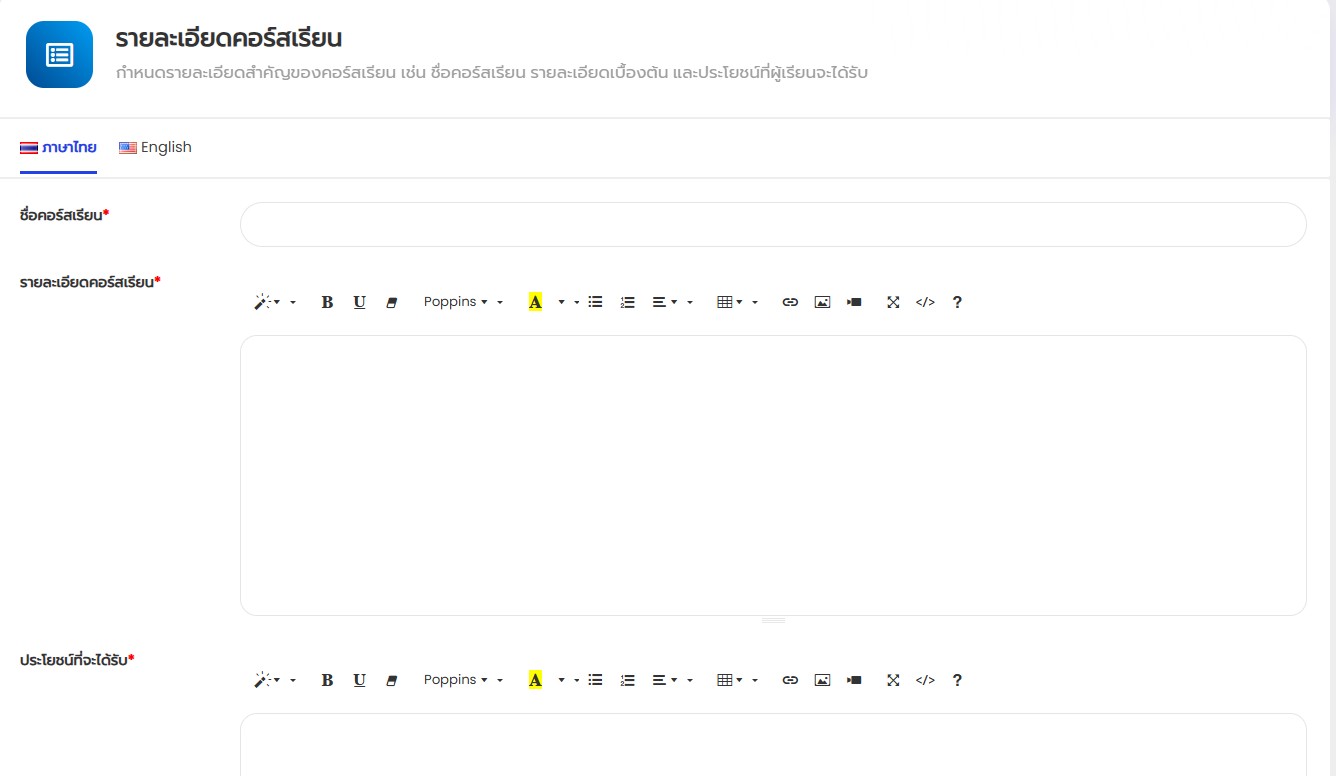 4. กรอกข้อมูลสร้างคอร์สเรียน